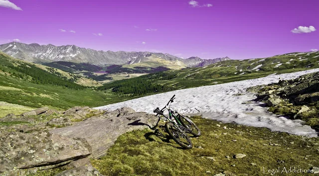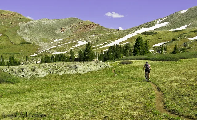 Trail description: Great rolling singletrack including several bridges as the trail cuts across Copper Mountain Ski Resort. Once alongside Guller creek several creek crossings and a continuous moderate climb through treeline upto the alpine basin formed by Elk Mountain and Sugarloaf peaks. Here you can expect snow fields and muddy conditions starting around 11700' during early summer months.